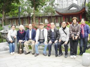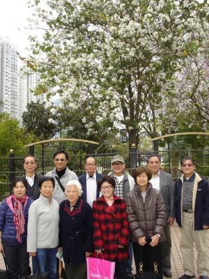 在附近公園(龍園)之前,背景為香港市花來個大合照留念。