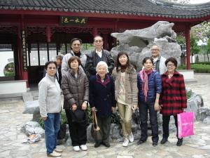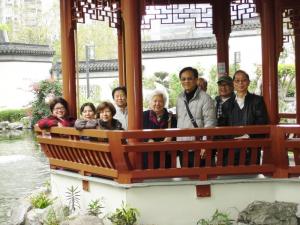 在江南特色涼亭合照。