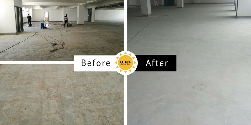 處理 :地面打磨去除膠漬、清潔地面。