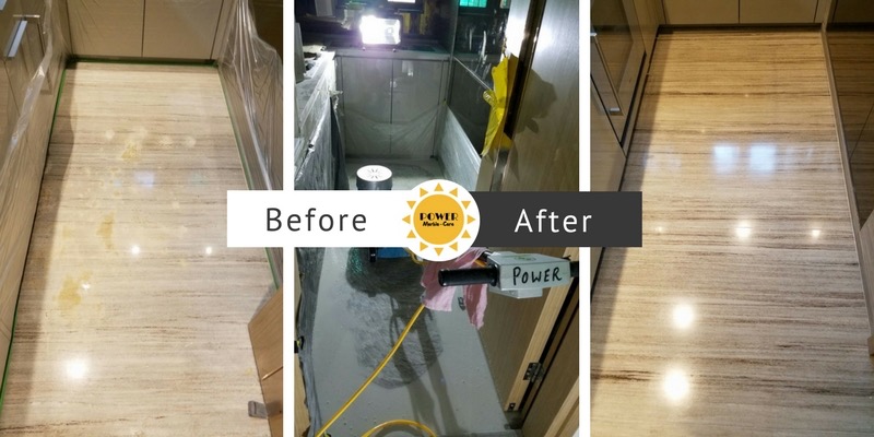 處理 : 使用雲石膠填補雲石間的隙縫,雲石研磨整平高低級、去除污漬、修復表面的划痕、拋光、雲石加硬加光、雲石晶面保養處理。